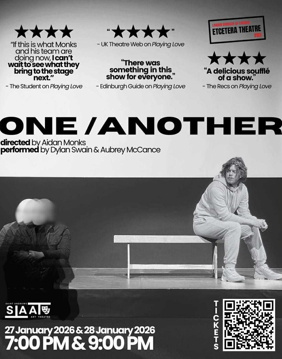 A brand-new play about memory, navigating queerness, loss and longing in a time when touch was taboo. This two-hander emerged after months of devised work, dealing with the long-term effects of the COVID-19 pandemic lockdowns on a generation, the power of rave and dance, and the often-fragile line between truth and illusion. One/Another draws on naturalism, in-yer-face & physical theatre to tackle big themes on an intimate scale. Come see.