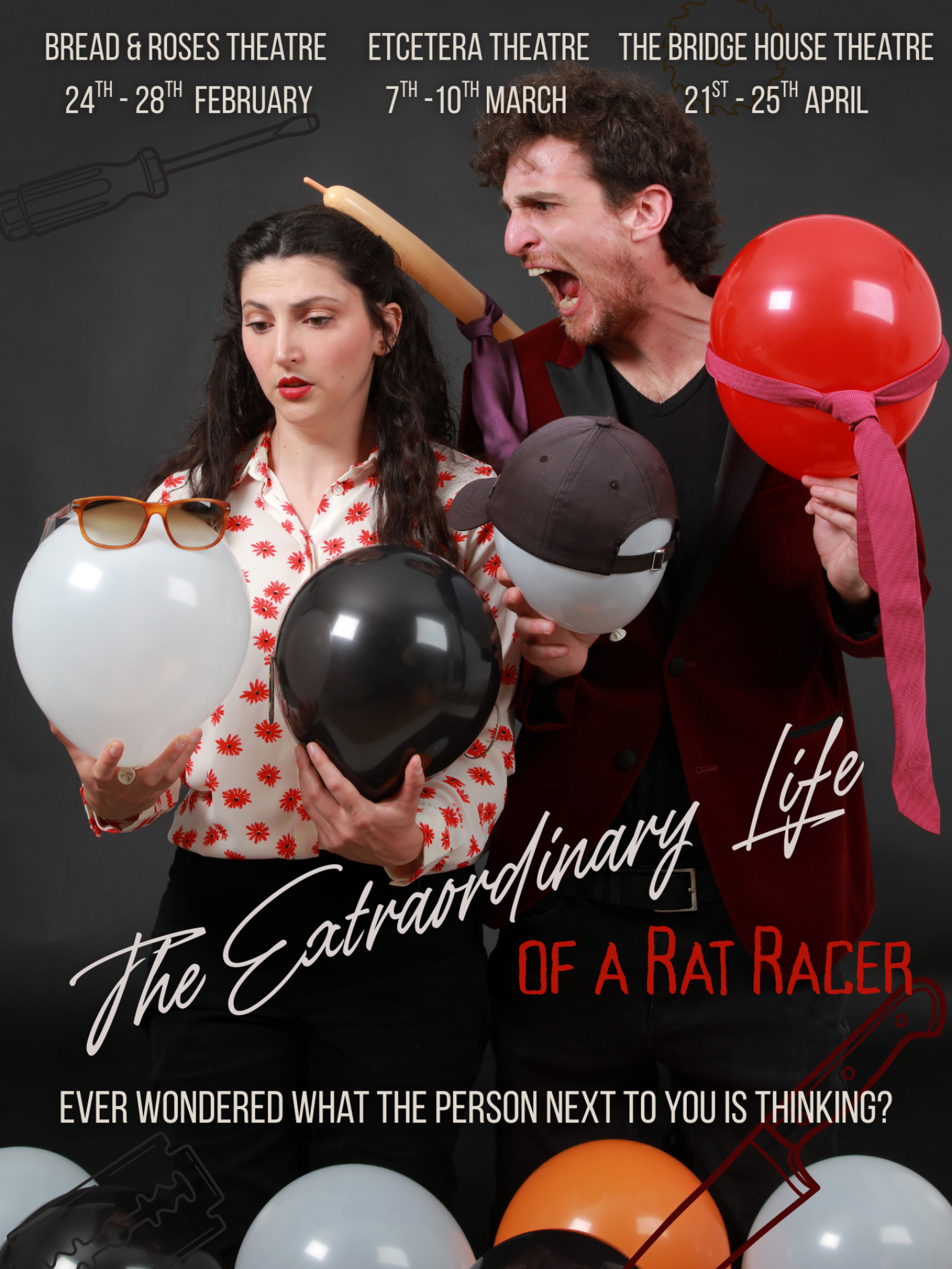 Prepare for the uncomfortable and dive into Eva’s mind. Guided by Arthur, a grotesque, sadistic, half-real figure, this two-hander surreal dark comedy will bring you on a journey that will shift your concept of normality.