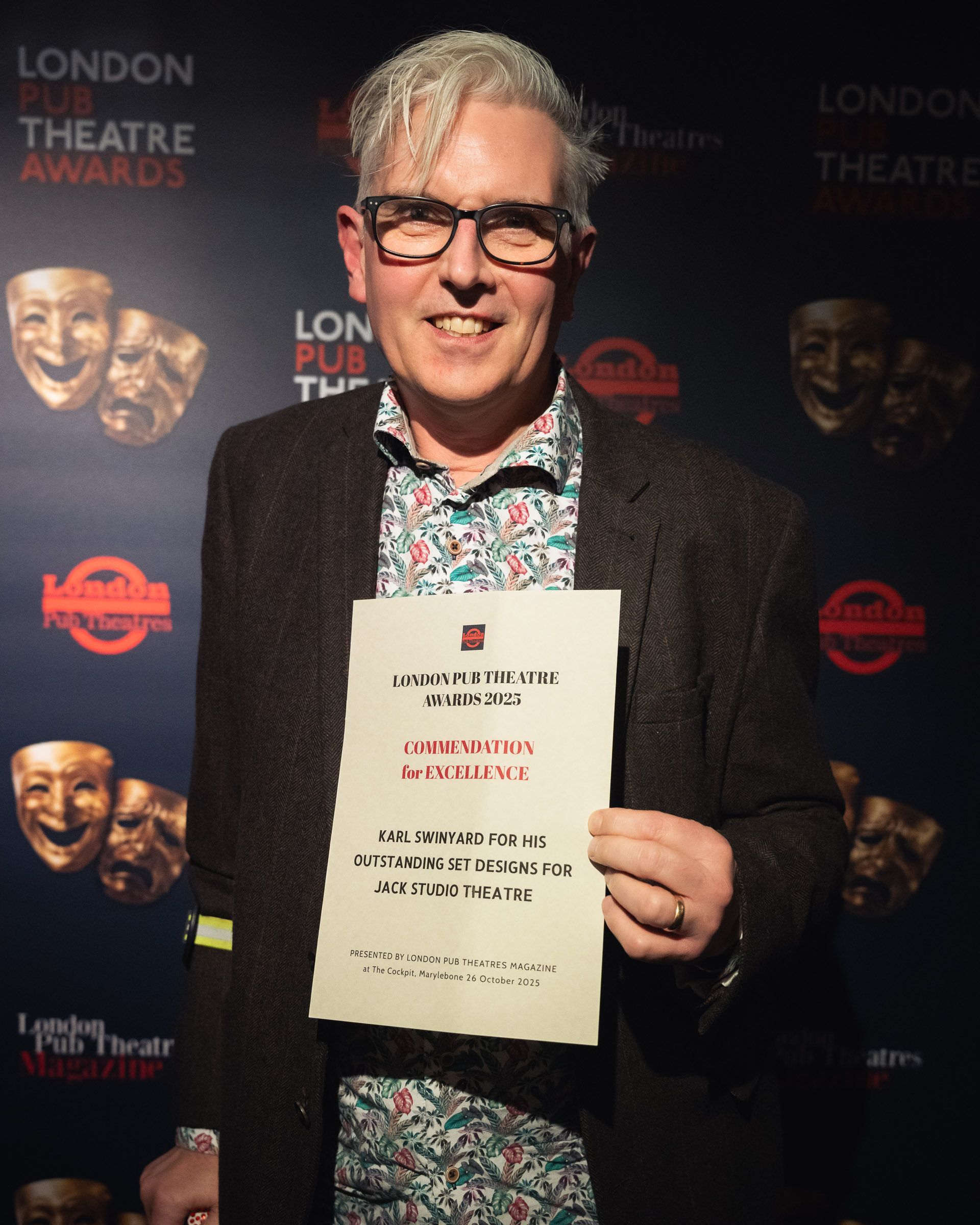NEWS: at 2025 LONDON PUB THEATRE AWARDS Brockley Jack Theatre Resident set designer Karl Swinyard received a special award for his work at Jack Studio Theatre.