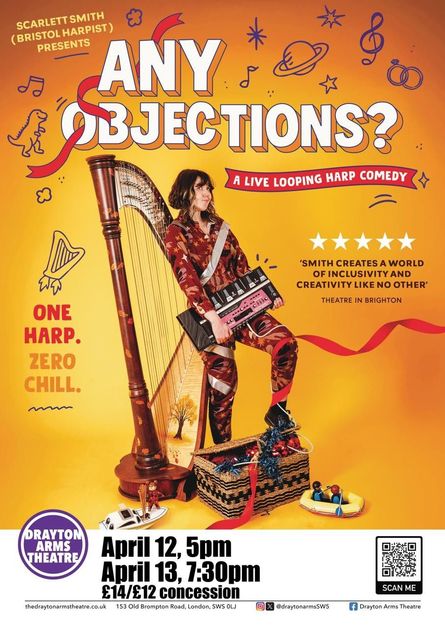 Mixing live looping, indie-pop jingles, and fast-paced punchlines, electro acoustic harpist and comedian Scarlett Smith takes you into her whimsical world where chaos meets creativity. Join her wedding industry adventures, questionable business ideas and harp innovation in a playful celebration of self-expression and silliness. ***Ed Fringe 2025 sell out show***"