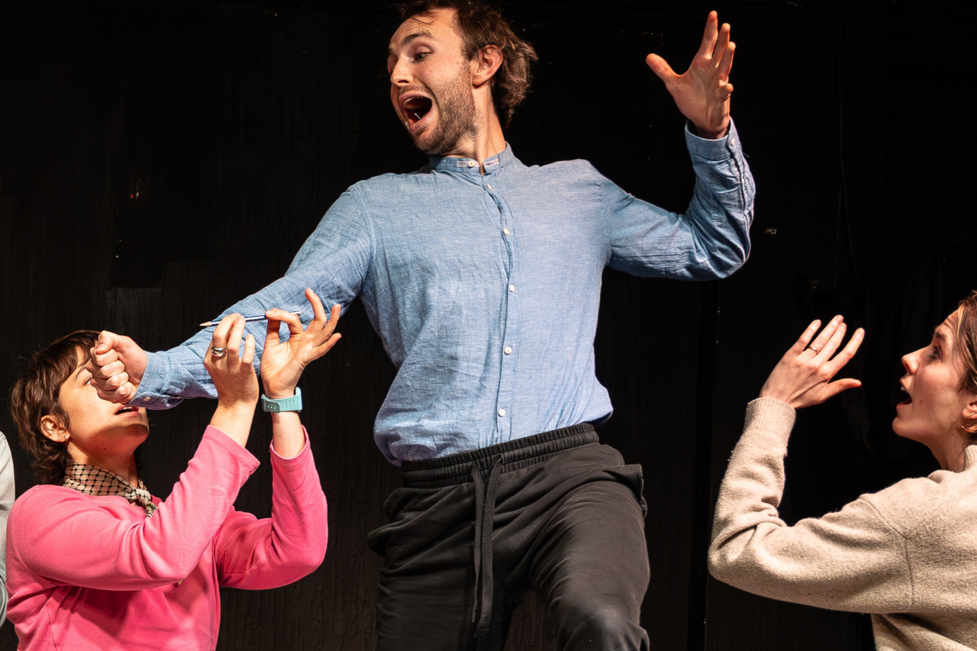 If the slow burn is intentional, it's a miscalculation. Seated actors winking at the audience, scripts in hand, can be entertaining—but not for an hour. The first half consequently drags, and it's difficult to get emotionally invested. What follows is more inventive. It also makes clever use of the staging concept to drive home a critique of Wilde's text. The ending lands, but the road there is bumpy.