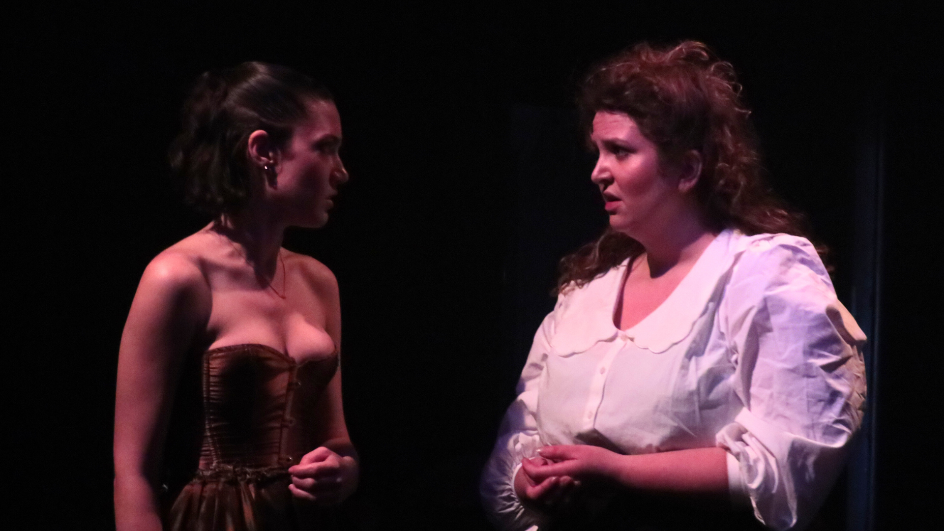 It’s a cast of six, one of whom - Alistair Smith - provides almost continuous, atmospheric keyboard music which he has composed. He also contributes occasional small roles from his position in the corner. Carter and the Creature remain in role but the other three multi-role and it’s unusually effective because they help each other seamlessly in and out of costumes as they morph from character to character. Alice Gold is outstanding as a gruff sailor, Victoria’s sister, a county girl who befriends the Creature, a Scottish doctor and more. She is always convincing in her versatility.