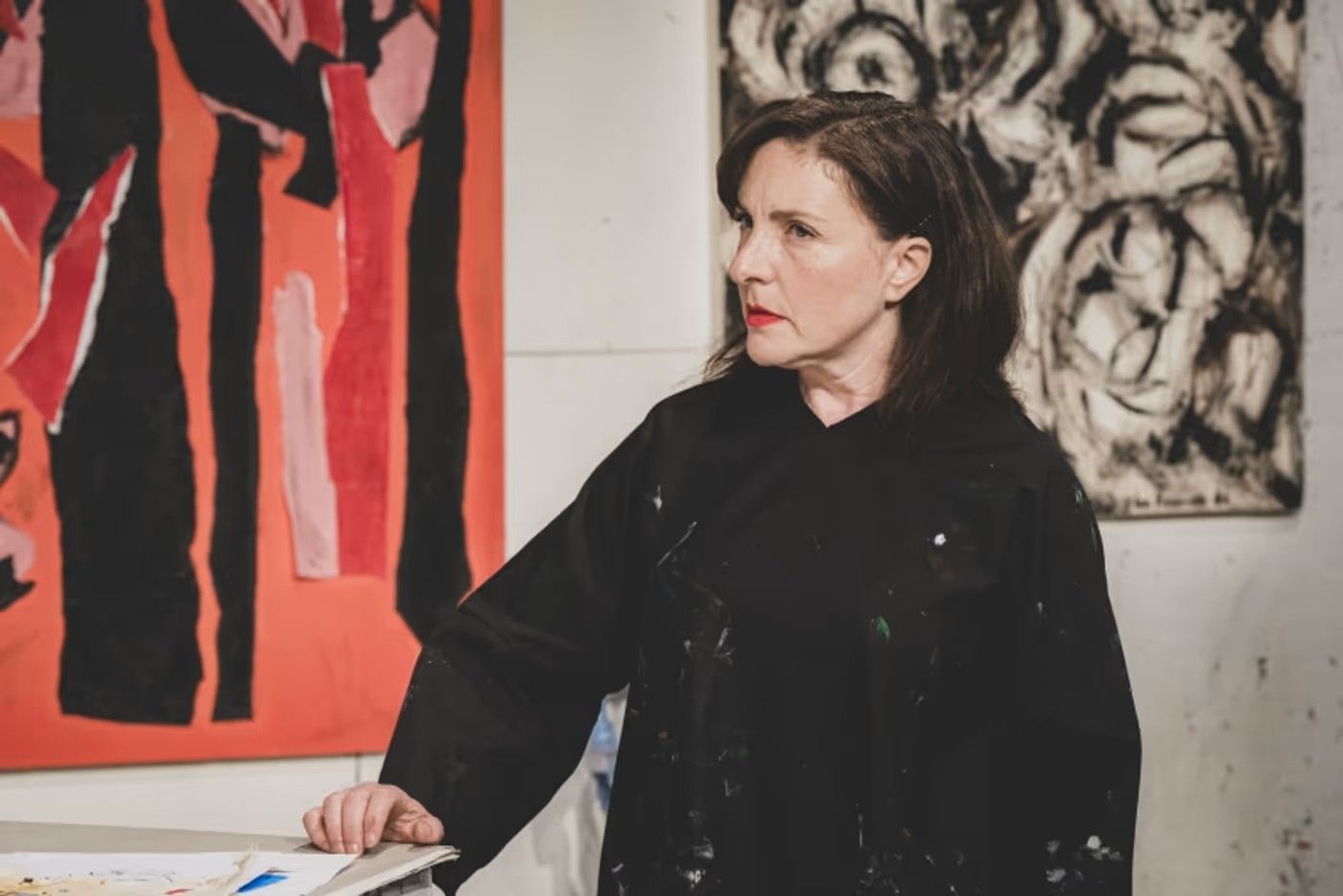 Credit must go to designer Ian Nichols. He has not only fashioned the Park's studio stage into a converted barn, but has also recreated many of Krasner's paintings to dot the walls. ‘It looks like an art gallery in here!’ an audience member whispered before the show—and he was right. Everything is gleaming white with spatters of colour, and it's a pleasure to have the actors analysing actual paintings, rather than the frequently employed staring-into-space-above-the-audience's-heads.