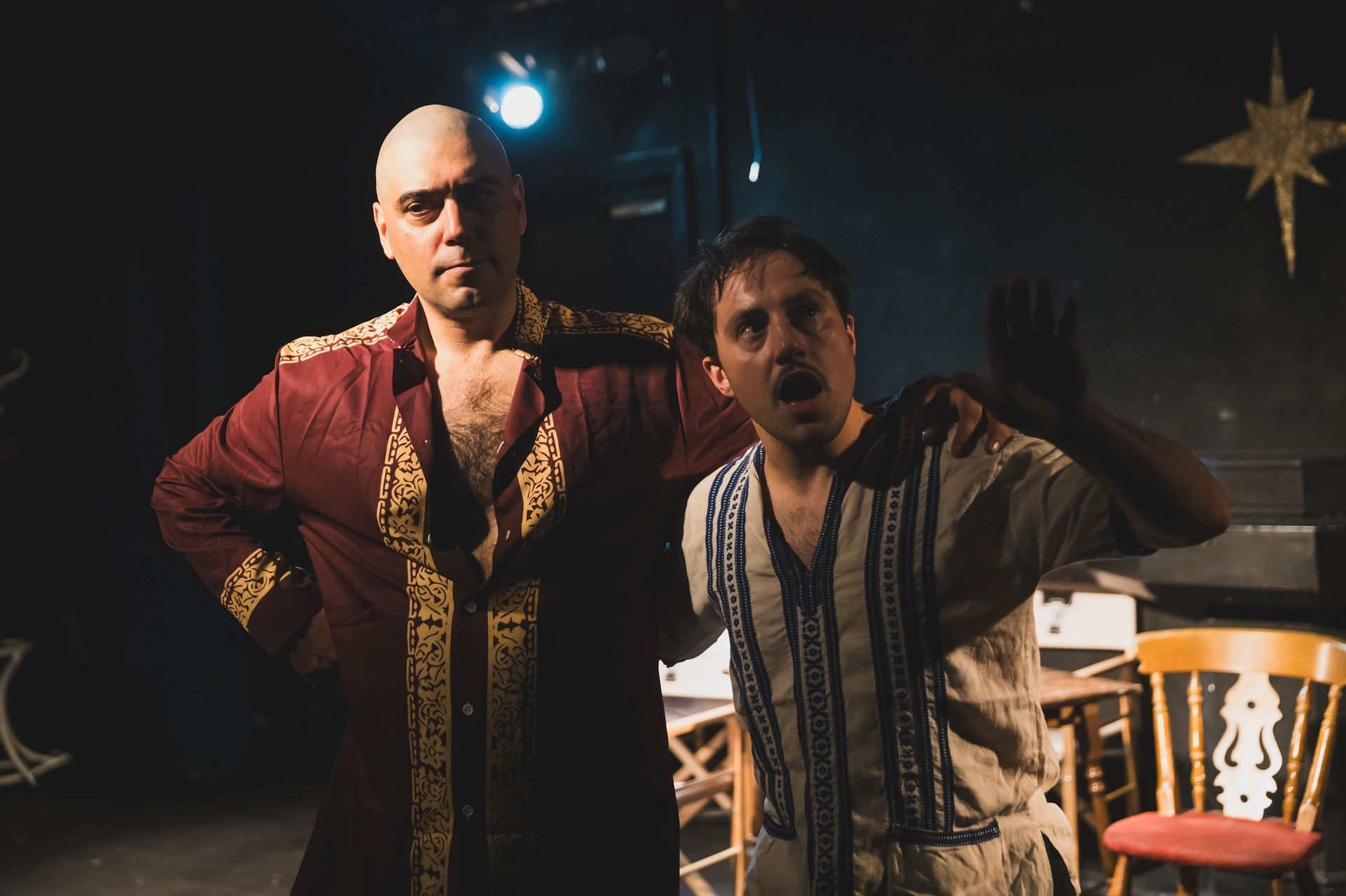 It’s a great vehicle for the cast and there are some strong performances. Toby Watts as the German actor, Horst Buchholtz – constantly mispronounced as Horse Butthole – is hilarious. Paul McLaughlin as Walter Mirish, the Yes Can Do producer, gives Stanley Tucci a run for his money, and Manos Koutsis, the imperious Yul Brynner, is fond of standing around with a thousand-yard stare, hands on hips. Rose Kaur, the only female cast member, multi-roles as a bride, various actresses, secretaries, and a banging Mexican censor.