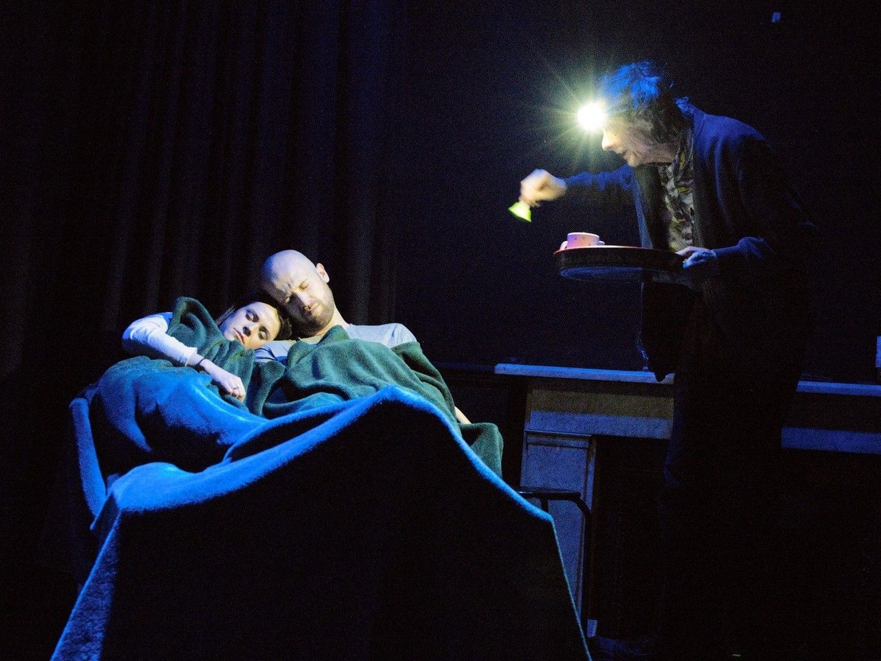 Eric has mental health issues, talks in a faint whine and repeats himself a lot. At the same time he’s believably and manipulatively cunning and threatens to kill himself if they throw him out. It’s a pleasing, well observed performance. And Emma Riches convincingly presents an articulate educated woman, good at negotiating. Her scenes with Eric are the best thing in the play. We get a clear vision of how good Cheryl must be at school dealing with troubled youngsters. Jobbing’s character is less sympathetic and at times the acting seems a bit overegged. The fourth character – much smaller role - is Lisa Minichiello’s Karin, Cheryl’s university friend who works for a homeless charity but who can’t do much to help.