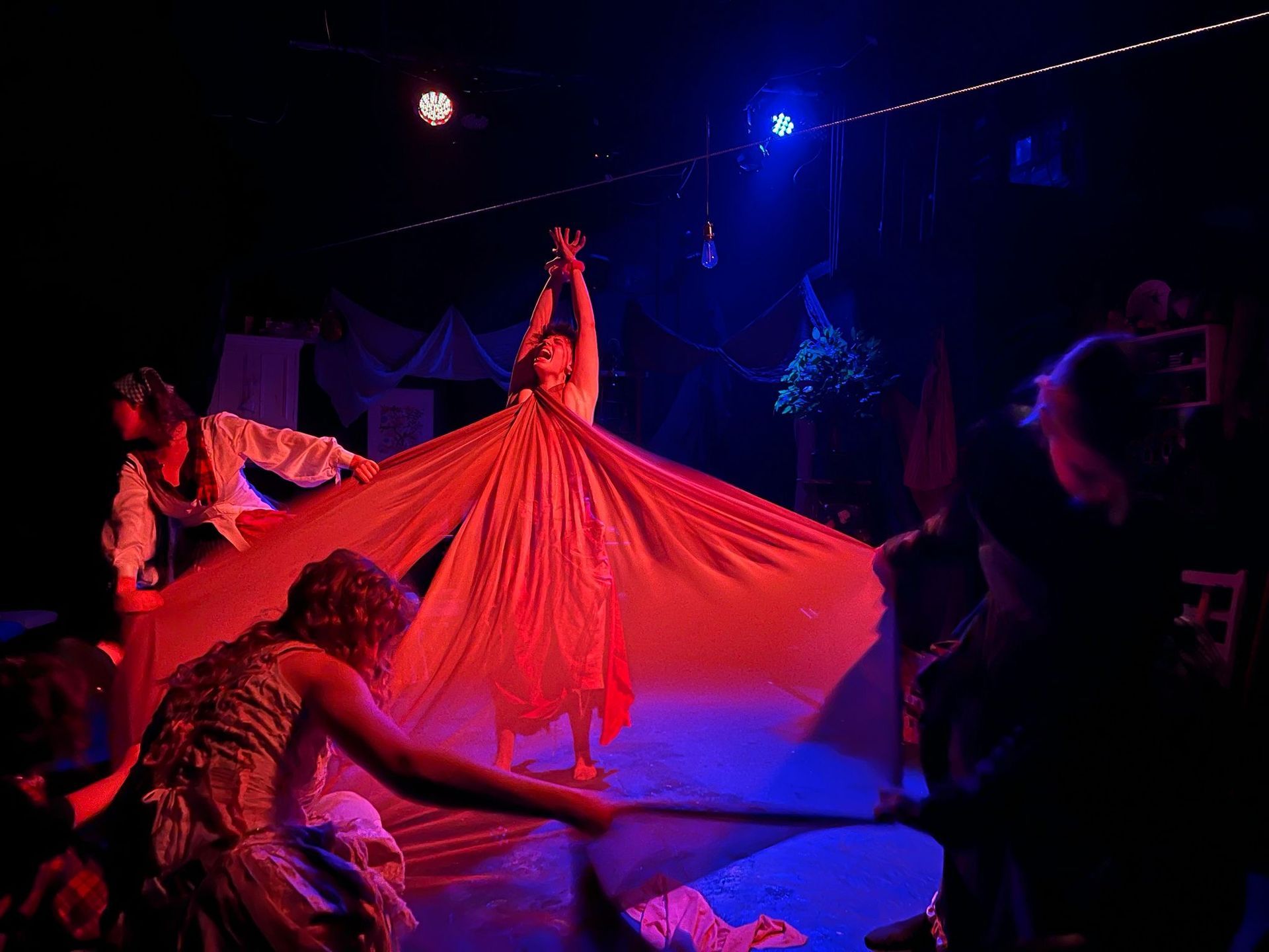 The Boline Inn marks the London debut of Liverpool-based, female-led company Meadow Report. Combining movement, song and an absurdist performance style, the production carries a distinctive atmosphere and a confident visual identity.