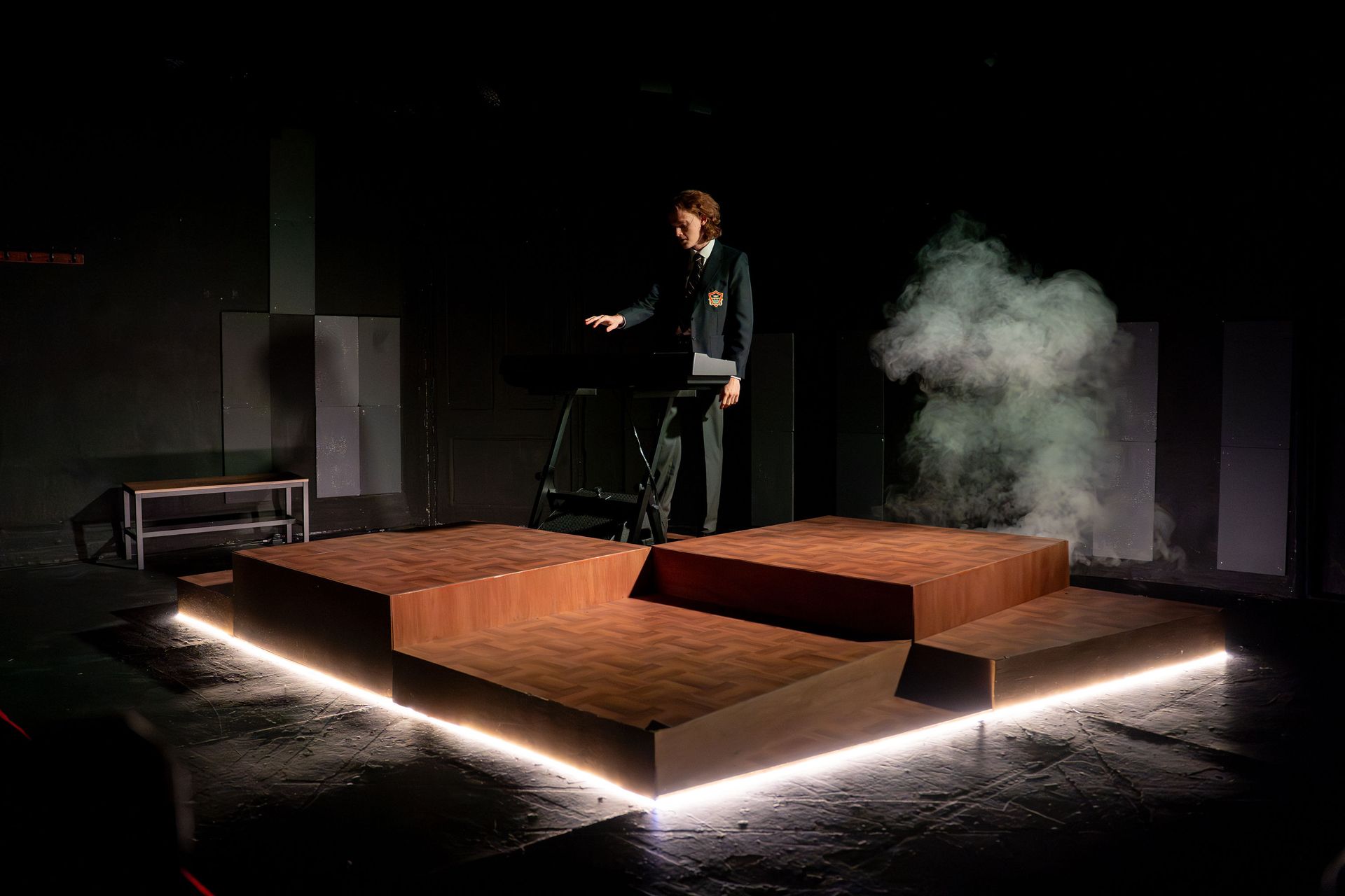 Acknowledgement to the creatives must mention the set design. The multi-platform design with illuminative features and a keyboard atop; this really elevates the work. Movement Director Greta Abbey works wonders; adding further dimension and momentum to the adaptation. Director Florence Carr-Jones shapes an engaging, dynamic and emotionally agile production.