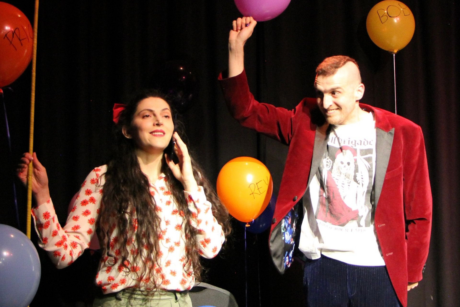 The storytelling is original, inventive and full of humour: a great mix of tools that instantly invites the audience to care, and fully empathise with what Eva is going through. Arthur’s vivid, gore and grotesque descriptions are both scarily compelling and terribly funny. The use of balloons within the show is brilliant and an effective way to build the tension, as the audience wonders when the next will pop…