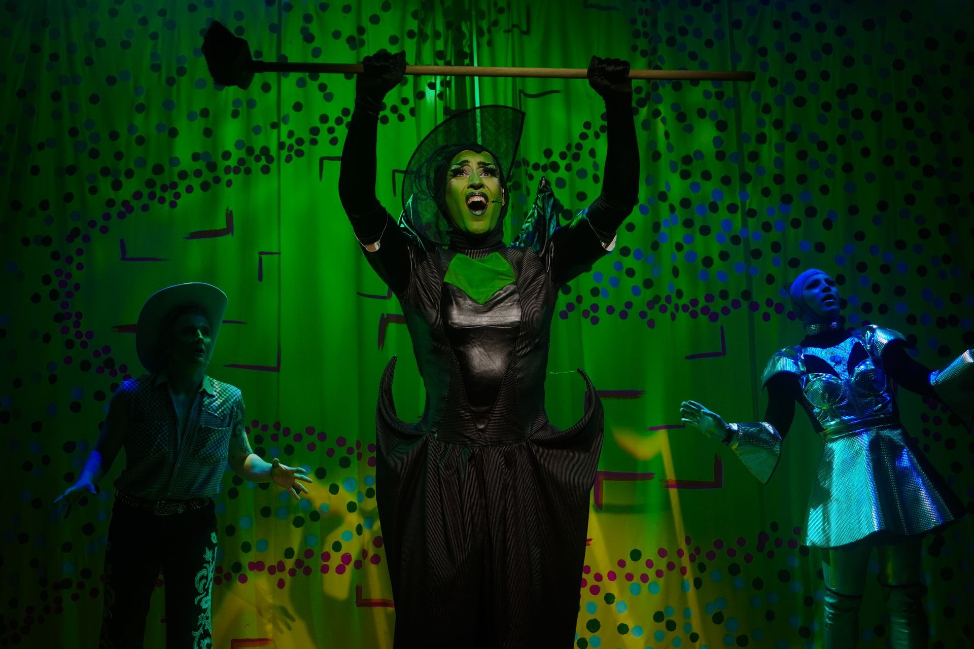 The make-up design by Yong-Chin Breslin and costumes by Isabella Van Braeckel and Cieranne Kennedy-Bell are excellent, suitably campy, and stand-up to any big budget version. The performances, too, are delivered with unrestrained gusto. But a special mention should be given for Gigi Zahir as the Wicked Witch, Adelephaba Dazeem, and Ro Suppa as Dor, both of whom are far and away the most spectacularly hilarious, surprisingly warm, and naturally charismatic. They both stand out for their innate talent for unashamed and unselfconsciously joyful panto play. I'd watch them again in a heartbeat, although it should be said that Eleanor Burke’s skit as the Good Witch about her bubble technology is performed with such mad vitality that it still has me laughing days later.